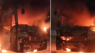 70 यात्रियों से भरी डबल डेकर बस में लगी भीषण आग, दिल्ली से जा रही थी UP