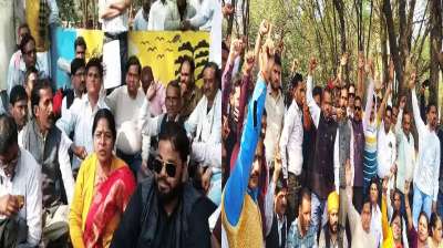 मान्यता नियमों में बदलाव की मांग को लेकर प्रदर्शन पर बैठे स्कूल संचाल, बीजेपी कार्यालय के सामने धरना