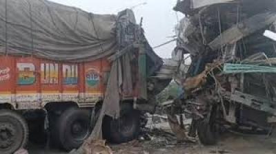 भीषण सड़क हादसा: दो ट्रकों की टक्कर में दो की जान गई, कई घायल