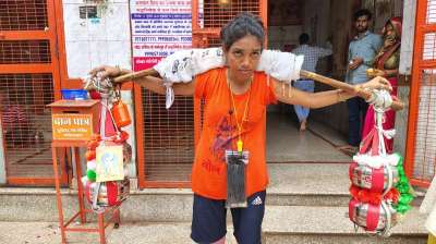हरिद्वार से 21 लीटर जल मां को स्नान कराने के लिए लाईं नीतू