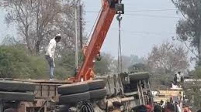 घने कोहरे के कारण बेकाबू हुआ बालू से लदा ट्रक