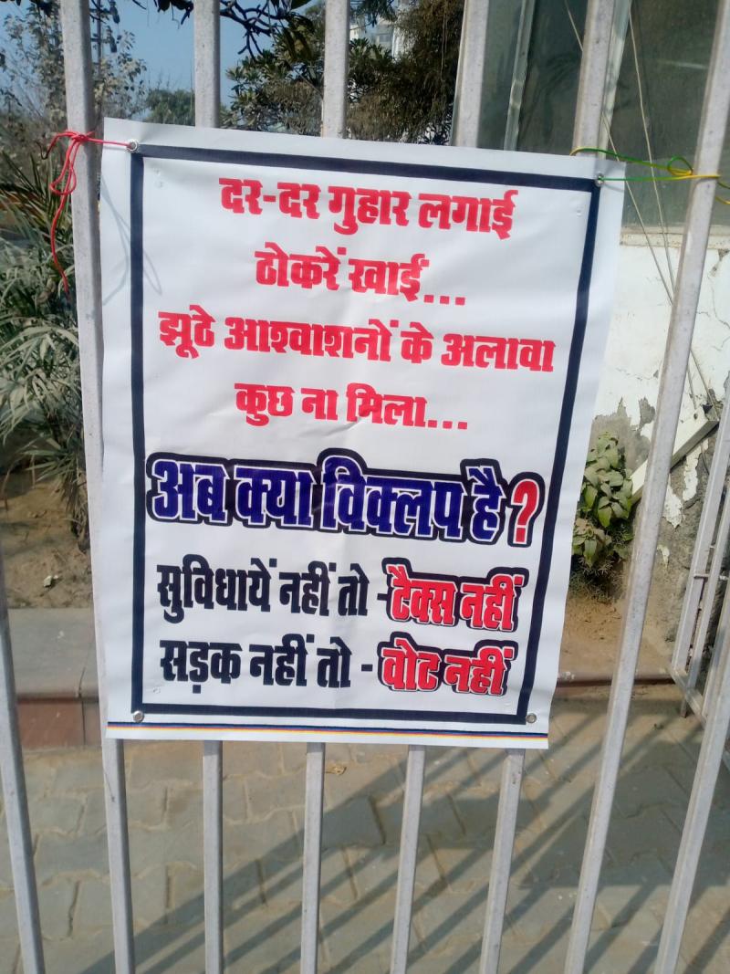गाजियाबाद। गणतंत्र यानि गणों की सत्ता, जनता का शासन यानि लोकतंत्र, मतलब जहां जनता के चुने प्रतिनिधि शासन करते हों। जैसे अपना देश, मगर अपने इस देश में गणतंत्र के 76 साल बाद भी लोग मूलभूत सुविधाओं के लिए तरस रहे हैं। गांव तो छोड़िए शहरों में भी बुरा हाल है। मोरटा स्थित हम-तुम रोड पर रहने वाले 15 हजार निवासियों ने सड़क न बनने से परेशान होकर अपनी सोसायटियों के गेट पर अब रोड नहीं तो वोट नहीं, के पोस्टर लगा दिए हैं। लोग अपने जनप्रतिनिधियों से बेहद नाराज हैं। यूपी में अगले साल विधानसभा के चुनाव में हैं, ऐसे में इसे लोगों की नाराजगी के रूप में देखा जा रहा है। इस संबंध में निवासी कई बार जीडीए अधिकारियों से मिल चुके हैं, लेकिन मिल रहा है केवल आश्वासन पर आश्वासन।