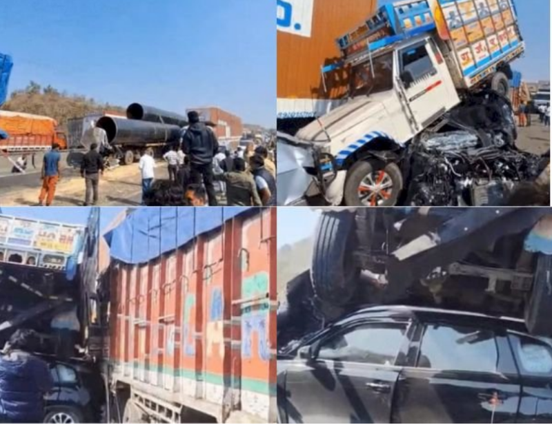 एक के बाद एक भिड़े 7 वाहन, महू में मचा हड़कंप