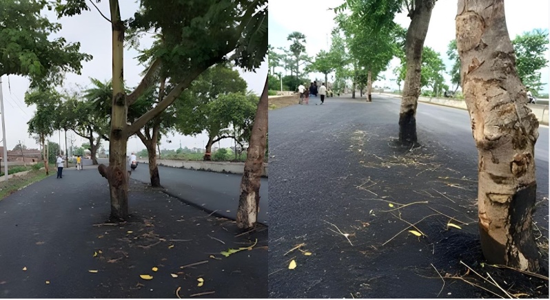 बिहार में अजब-गजब विकास! 100 करोड़ की लागत से बनी सड़क के बीचों-बीच खड़ा है पेड़