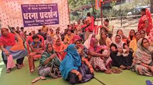 निगम प्रशासन के खिलाफ कर्मचारियों का प्रदर्शन