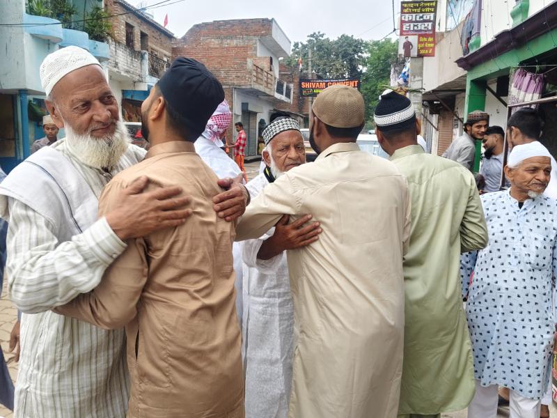 नमाज के बाद लोगों ने एक-दूसरे को गले लगाया