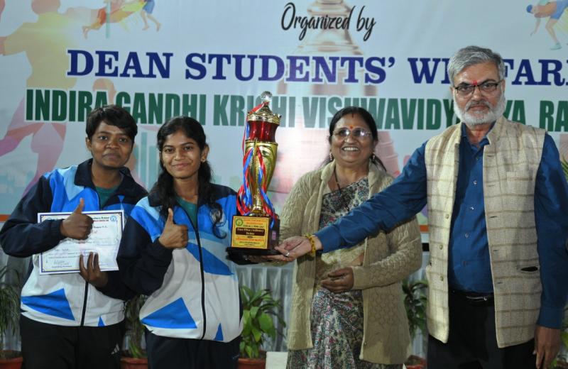 रायपुर :  इंदिरा गांधी कृषि विश्वविद्यालय, रायपुर में 08 से 11 दिसम्बर 2025 तक आयोजित विश्वविद्यालयीन चार दिवसीय खेल कुम्भ का कल यहां समापन हुआ। कृषि महाविद्यालय, रायपुर के स्पार्ट्स कॉम्पलैक्स में चार दिवसीय खेल कुम्भ के समापन समारोह के मुख्य अतिथि डॉ. एस.एस. सेंगर ने विभिन्न खेल स्पर्धाओं में विजेता प्रतिभागियों को पुरस्कार एवं प्रमाण पत्र देकर सम्मानित किया। कार्यक्रम की अध्यक्षता अधिष्ठाता छात्र कल्याण डॉ. संजय शर्मा ने की। इस विश्वविद्यालयीन खेल-कूद प्रतियोगिता में इंदिरा गांधी कृषि विश्वविद्यालय के पूर्व, पश्चिम, उत्तर एवं दक्षिण जोन के अंतर्गत आने वाले समस्त महाविद्यालयों के 160 प्रतिभागी शामिल हुए। विश्वविद्यालयीन खेल कुम्भ में ईस्ट जोन 174 अंक प्राप्त कर ओवर ऑल चैम्पियन रहा, वहीं 91 अंक के साथ साऊथ जोन ओवर ऑल रनर अप रहा। सर्वश्रेष्ठ बालिका एथलीट का खिताब ईस्ट जोन की कुमारी संध्या नेताम तथा सर्वश्रेष्ठ बालक एथलीट का खिताब ईस्ट जोन के ही श्री कुनाल रावटे को प्रदान किया गया। समापन समारोह में कृषि महाविद्यालय रायपुर की अधिष्ठाता डॉ. आरती गुहे, कृषि अभियांत्रिकी महाविद्यालय के अधिष्ठाता डॉ. अजय वर्मा, निदेशक शिक्षण डॉ. ए.के. दवे, भी मौजूद थे। समापन समारोह में विभिन्न खेल स्पर्धाओं के निर्णायकगणों टीम मैनेजरों तथा आयोजन समिति के सदस्यों को भी सम्मानित किया गया। इस अवसर पर विश्वविद्यालयीन खेलकूद प्रतियोगिता में शामिल होने वाले समस्त चार जोन के खिलाड़ी टीम मैनेजर, रैफरी, शिक्षकगण अधिकारी एवं कर्मचारी उपस्थित थे। कार्यक्रम का संचालन डॉ. दीप्ती झा ने किया।