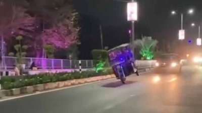 जीआईएस की सुरक्षा के बीच वीआईपी रोड पर ई-रिक्शा चालक का स्टंट