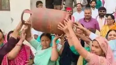 खाली सिलेंडर लेकर सड़कों पर उतरे कार्यकर्ता, सरकार के खिलाफ नारेबाजी