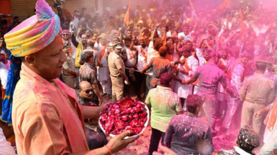 मुख्यमंत्री योगी आदित्यनाथ ने गोरखनाथ मंदिर में मनाई होली, कहा.......