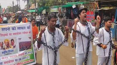 अपनी मांगों को लेकर छत्तीसगढ़ में बीएड शिक्षकों का अनोखा प्रदर्शन, लहराया क्रांतिकारी तिरंगा