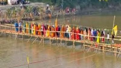 खतरे के पुल पर आस्था भारी, हजारों व्रती पहुंचे अर्घ्य देने