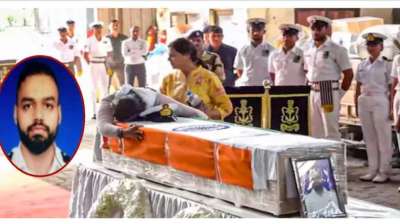 पहलगाम आतंकी हमले में मारे गए भारतीय नौसेना के लेफ्टिनेंट विनय नरवाल को उनकी पत्नी ने भावभीनी विदाई दी. पहले फफक कर रोई, फिर सैलूट किया और जय हिंद बोलते...