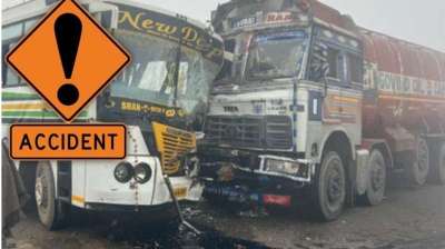 सड़क हादसा : बस और ट्रक में भीषण टक्कर; 20 से अधिक लोग घायल
