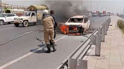 नेशनल हाईवे-44 पर कार में लगी भीषण आग