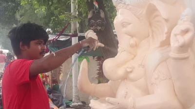 नई दिल्ली: कहीं सड़क किनारे बिना रंग-रोगन के रखीं गणपति बप्पा की मूर्तियां , तो कहीं धूप में सूखती गजानन की प्रतिमाएं और कहीं प्लास्टिक की पॉलिथीन से ढकी गणेश...